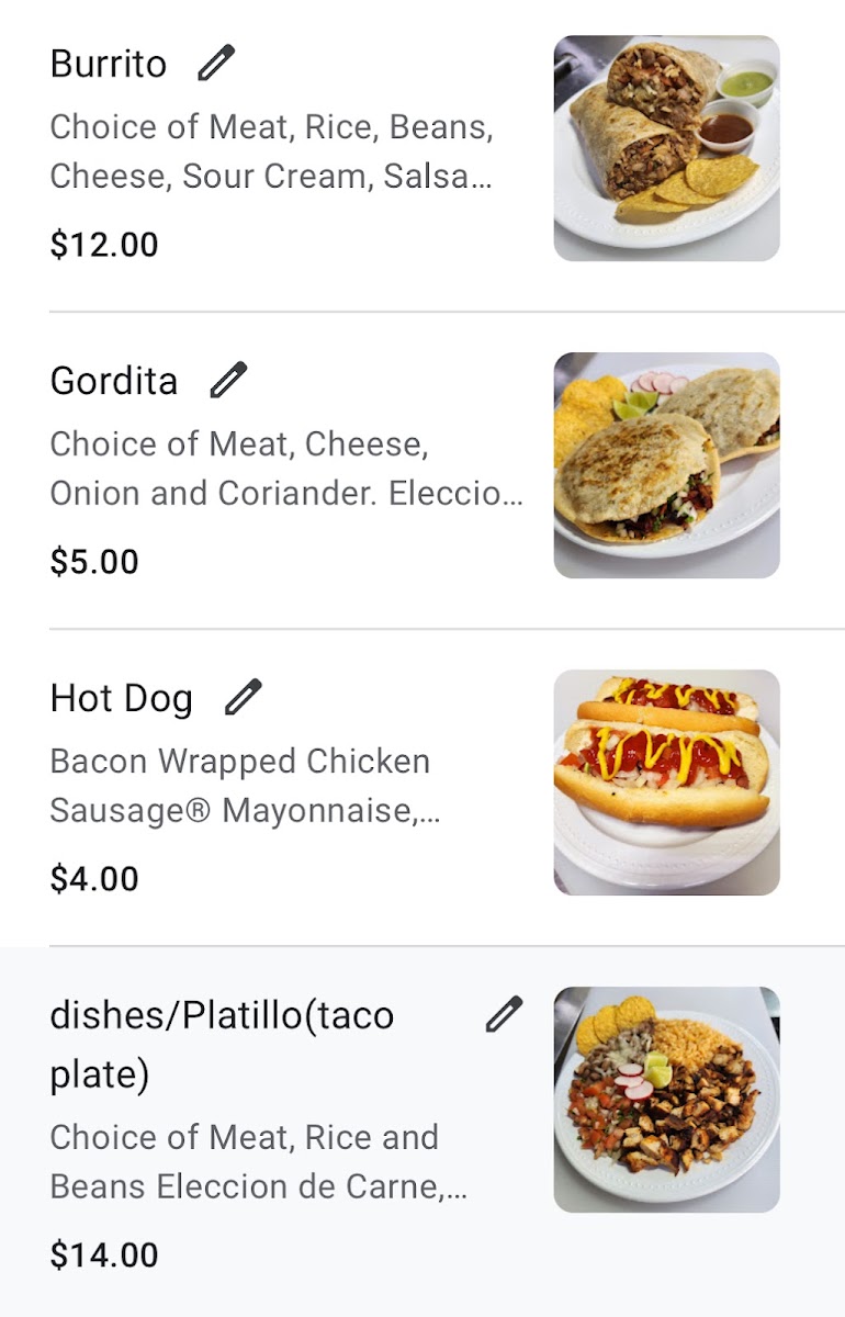 Cheese,choice of meat,onion and coriander. Queso,elecciò...